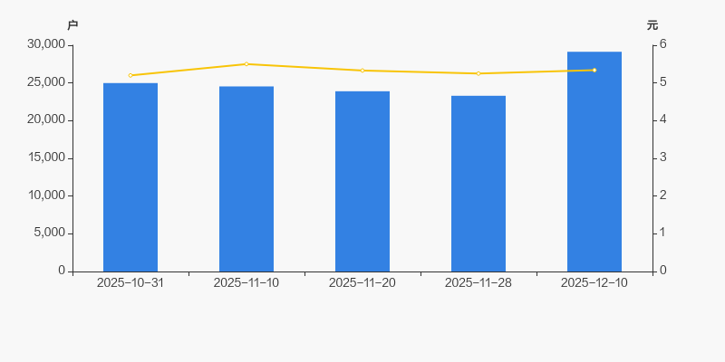 2025年10月31日至今,公司股东户数显著增长,区间涨幅为16.60%。2025年10月31日至2025年12月10日区间股价上涨2.69%。