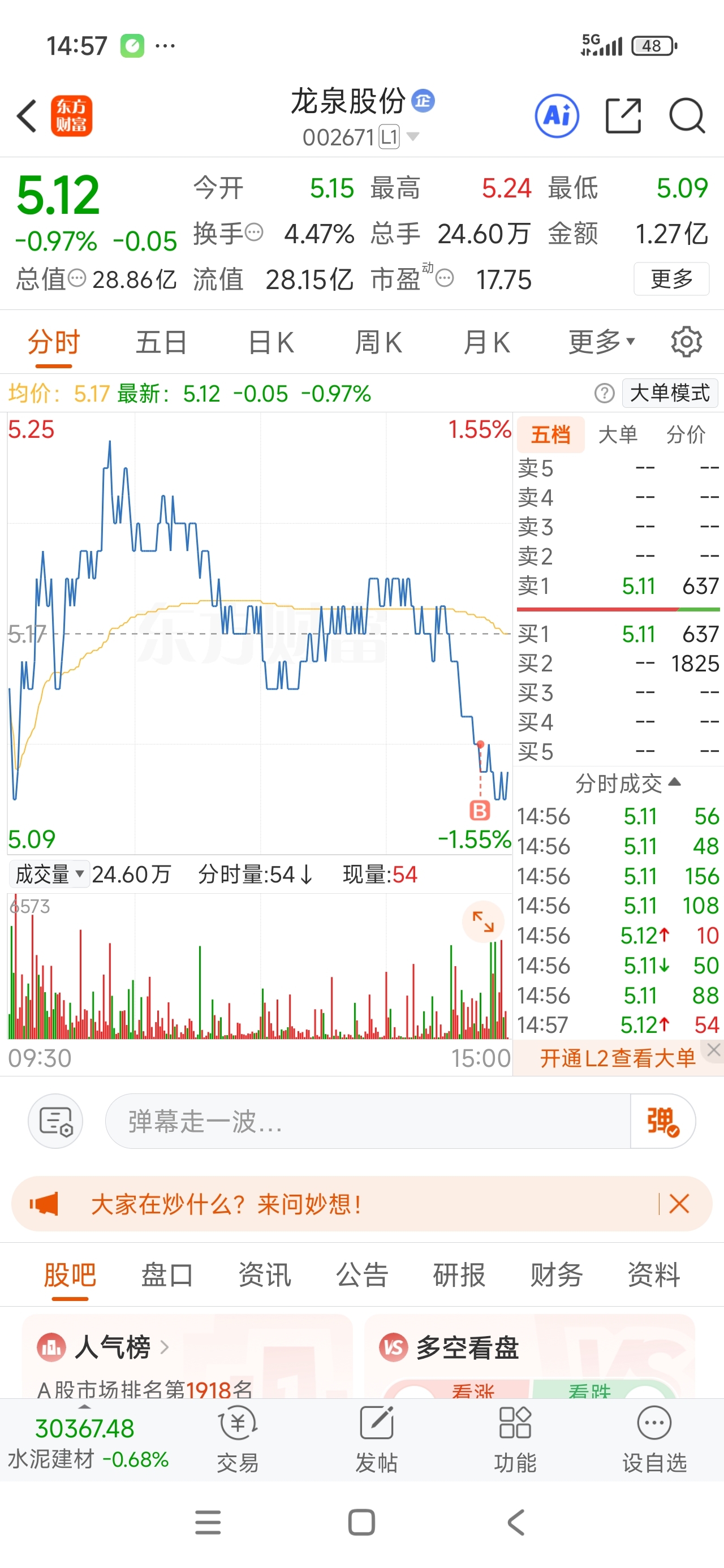 $龙泉股份(SZ002671)$ 满仓抄底了