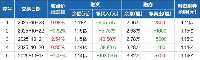 东江环保:融资净偿还405.74万元,融资余额1.11亿元(10-23)