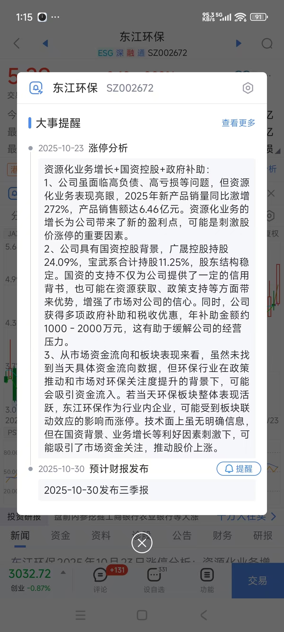 $东江环保(SZ002672)$ 不是有利好消息吗?咋一个涨停板就掉回去呢……