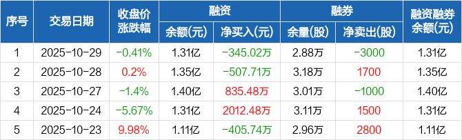 东江环保:融资净偿还345.02万元,融资余额1.31亿元(10-29)
