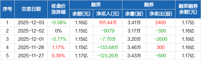 东江环保:融资净买入101.44万元,融资余额1.16亿元(12-03)