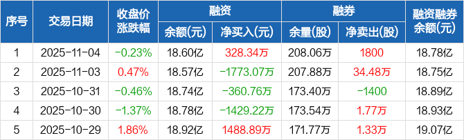 西部证券:融资净买入328.34万元,融资余额18.6亿元(11-04)