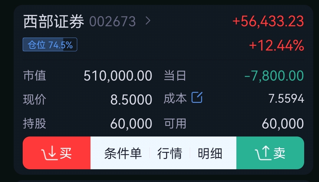 $西部证券(SZ002673)$ gou庄来打我啊