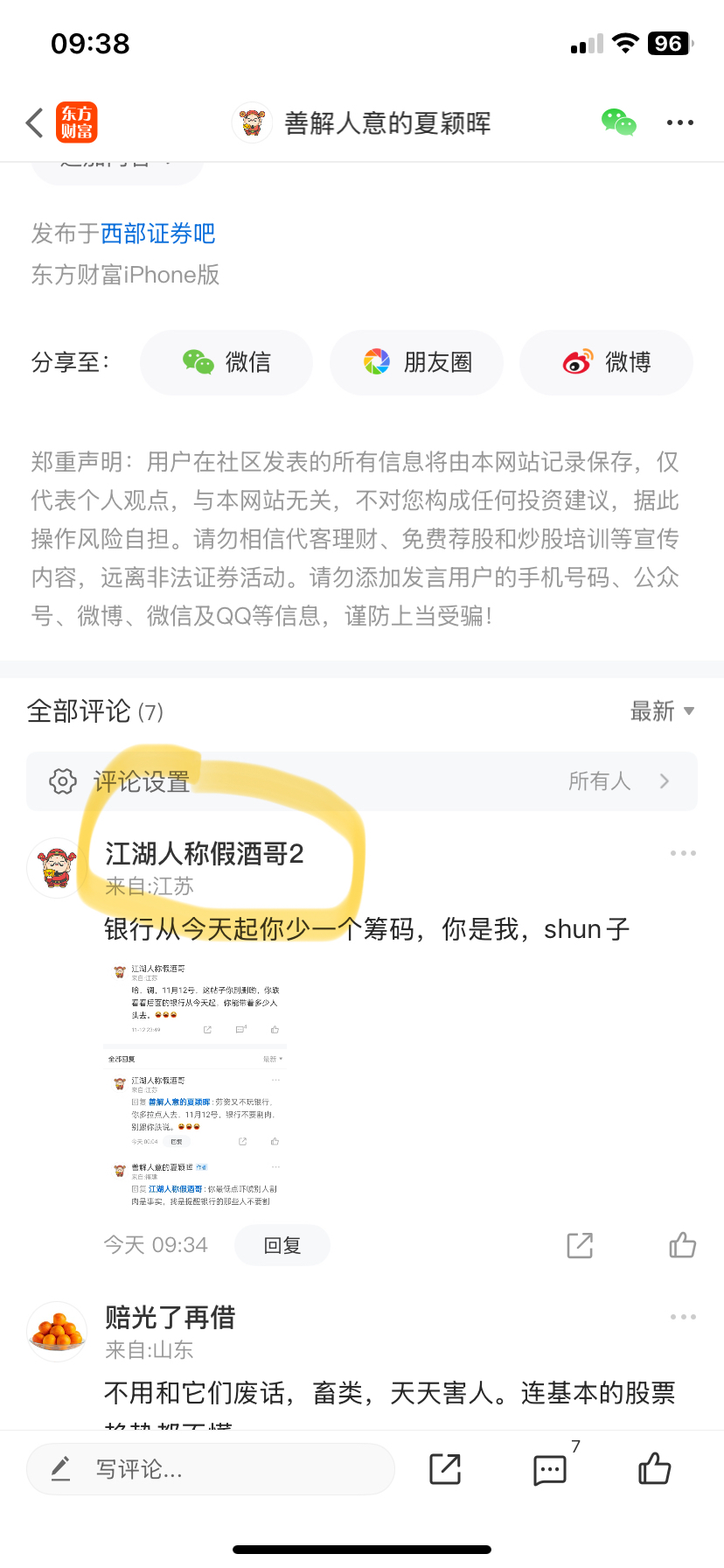 $西部证券(SZ002673)$ 啥情况,这么多小号嘛,拉黑也没用,还是缠着我,又冒出个假 酒2