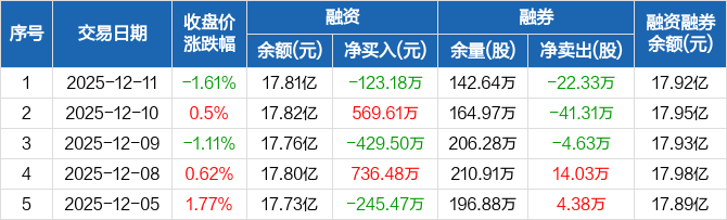 西部证券:融资净偿还123.18万元,融资余额17.81亿元(12-11)