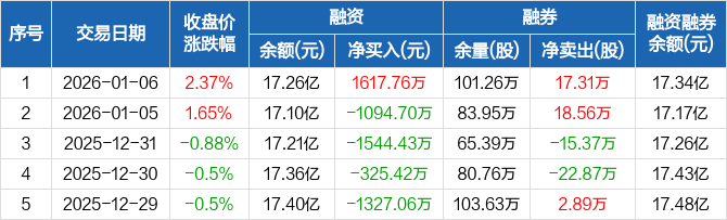 西部证券:融资净买入1617.76万元,融资余额17.26亿元(01-06)