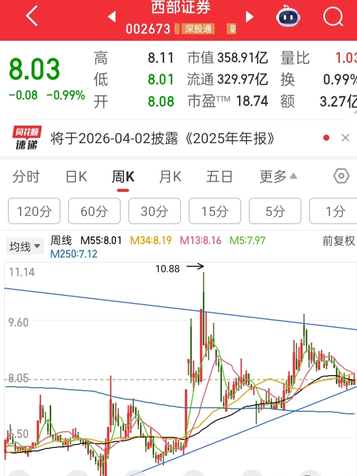 $西部证券(SZ002673)$ 这两天大喊去买华林,华安的,自己去的买了没?西部涨的少,跌的少,哪有那么多好事。周线趋势,慢慢爬吧。少亏就是赚。