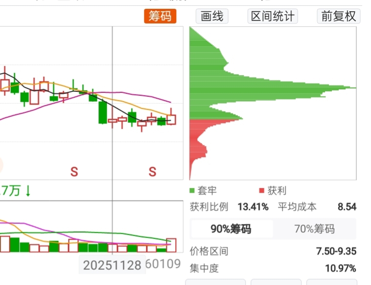 昨天晚上喝了点假酒,喝完假酒复个盘,7周时间,看看主力在这吃了多少筹码。别说都是