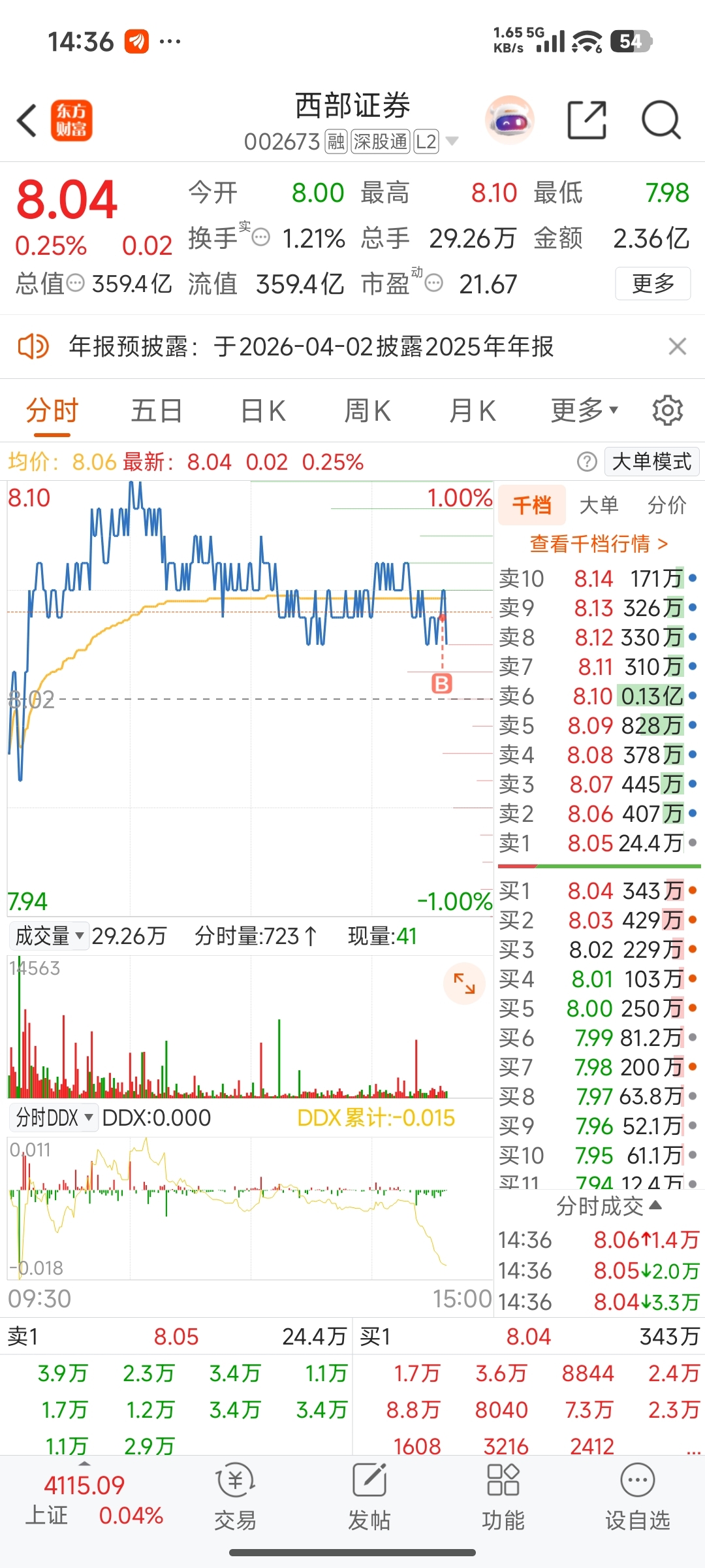 $西部证券(SZ002673)$ 听说这朱丽是慢热型,巧了,俺也是!805扎入,先来个一百手试试水,MARK