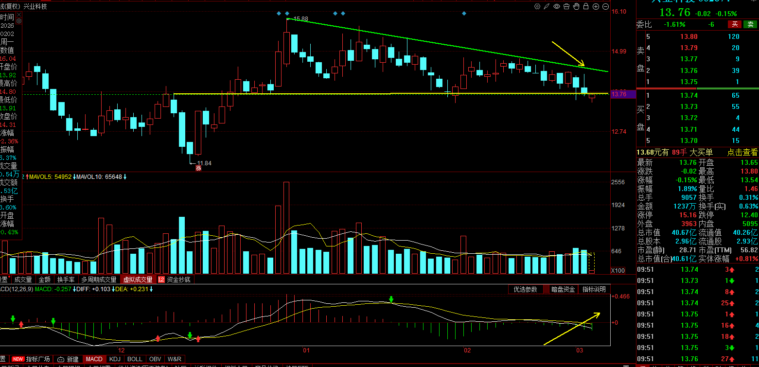 等待上轨突破的买点,等待MACD金叉的反攻。