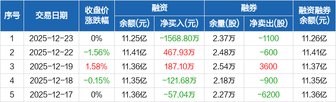 东诚药业:融资净偿还1568.8万元,融资余额11.25亿元(12-23)