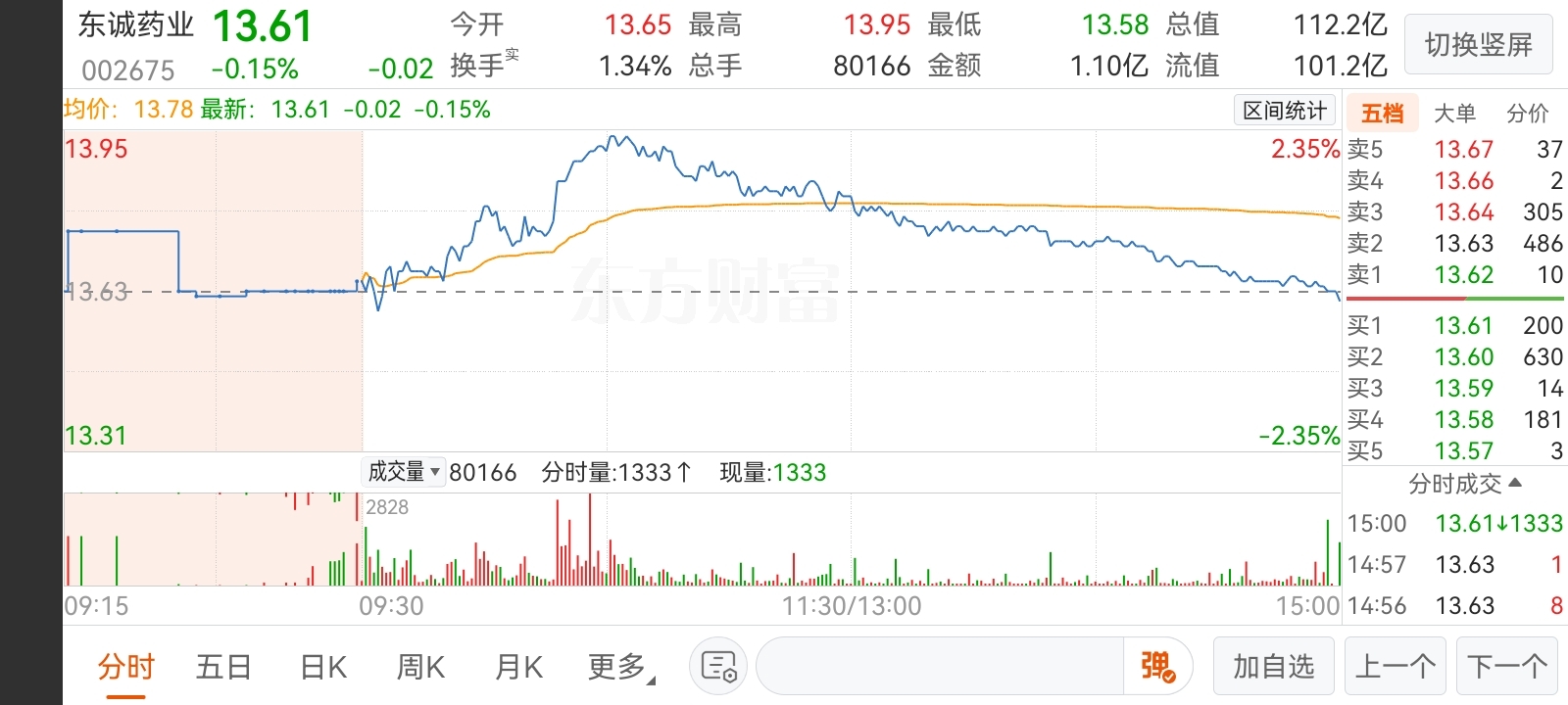 分时走势观察上周五东诚药业,可能存在回购,主力以及游资出逃东诚药业,短期面临业绩三年下行风险,投资者悲观情绪存在,抛压特别大。