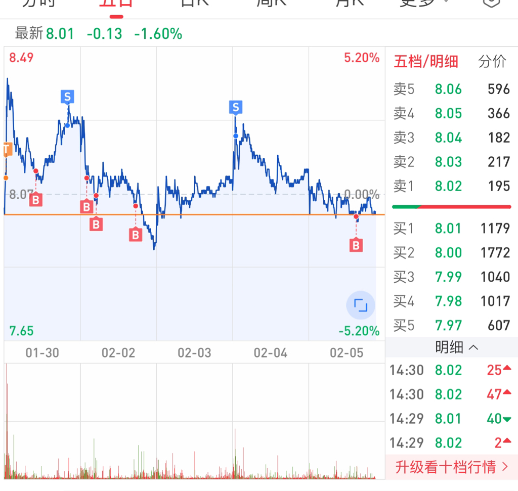 我昨天8.25走了不拖累大家,你这个you今天就朝着8去,我看看你能不能跌破8,