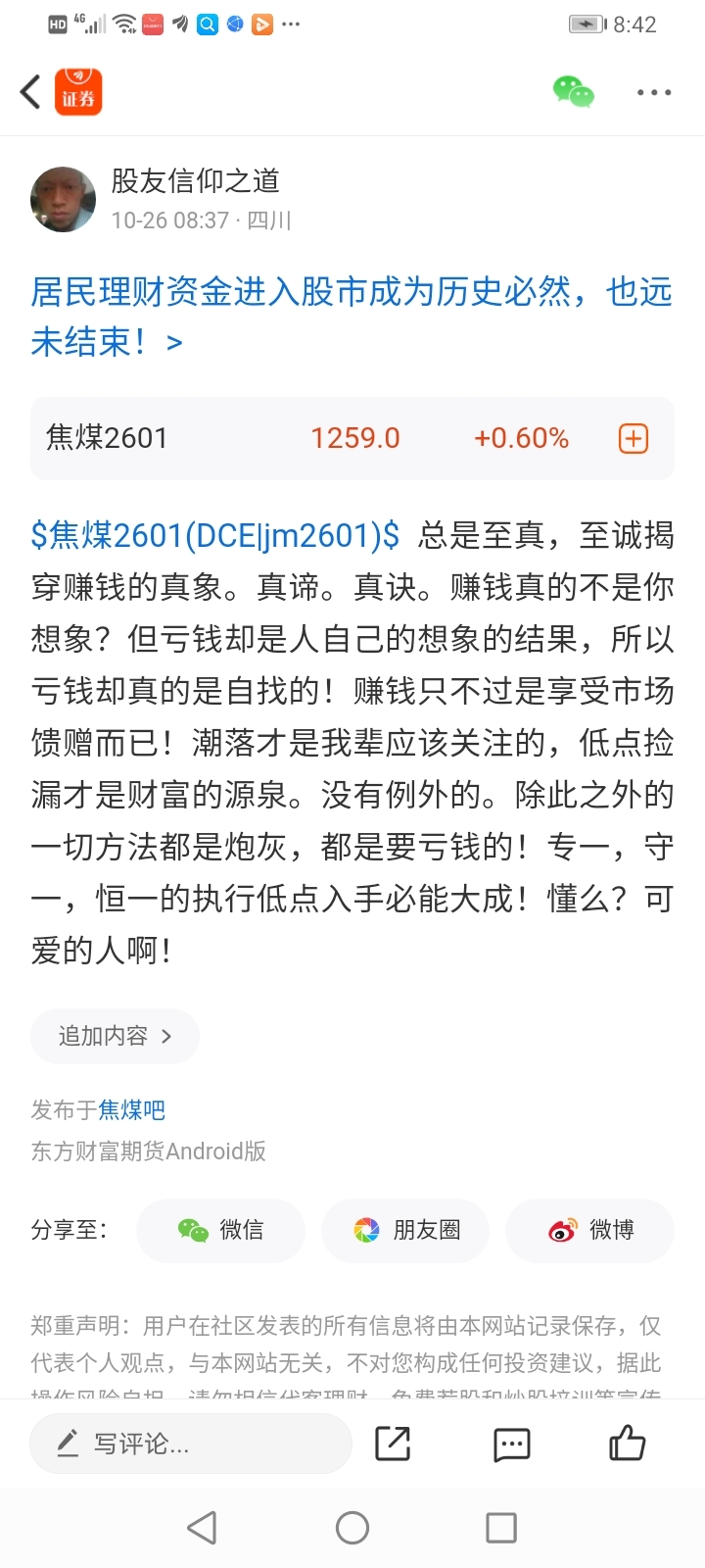 温馨提示: 1.根据《证券法》规定,禁止编造、传播虚假信息或者误导性信息,扰乱证券市场;2.用户在本社区发表的所有资料、言论等仅代表个人观点,与本网站立场无关,不对您构成任何投资建议。用户应基于自己的独立判断,自行决定证券投资并承担相应风险。《东方财富社区管理规定》