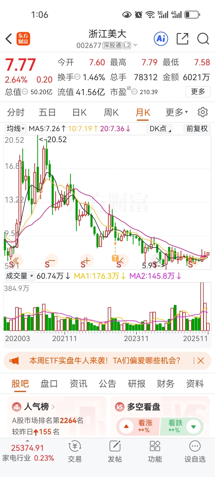 $浙江美大(SZ002677)$ 三年了,让我回本吧