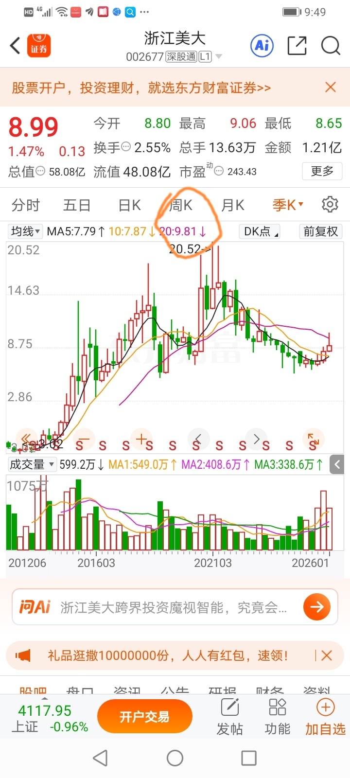 $浙江美大(SZ002677)$