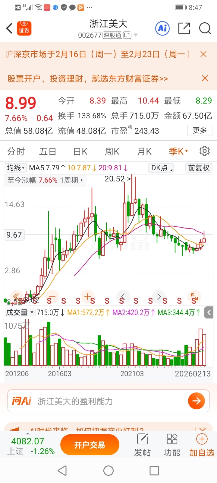 $浙江美大(SZ002677)$