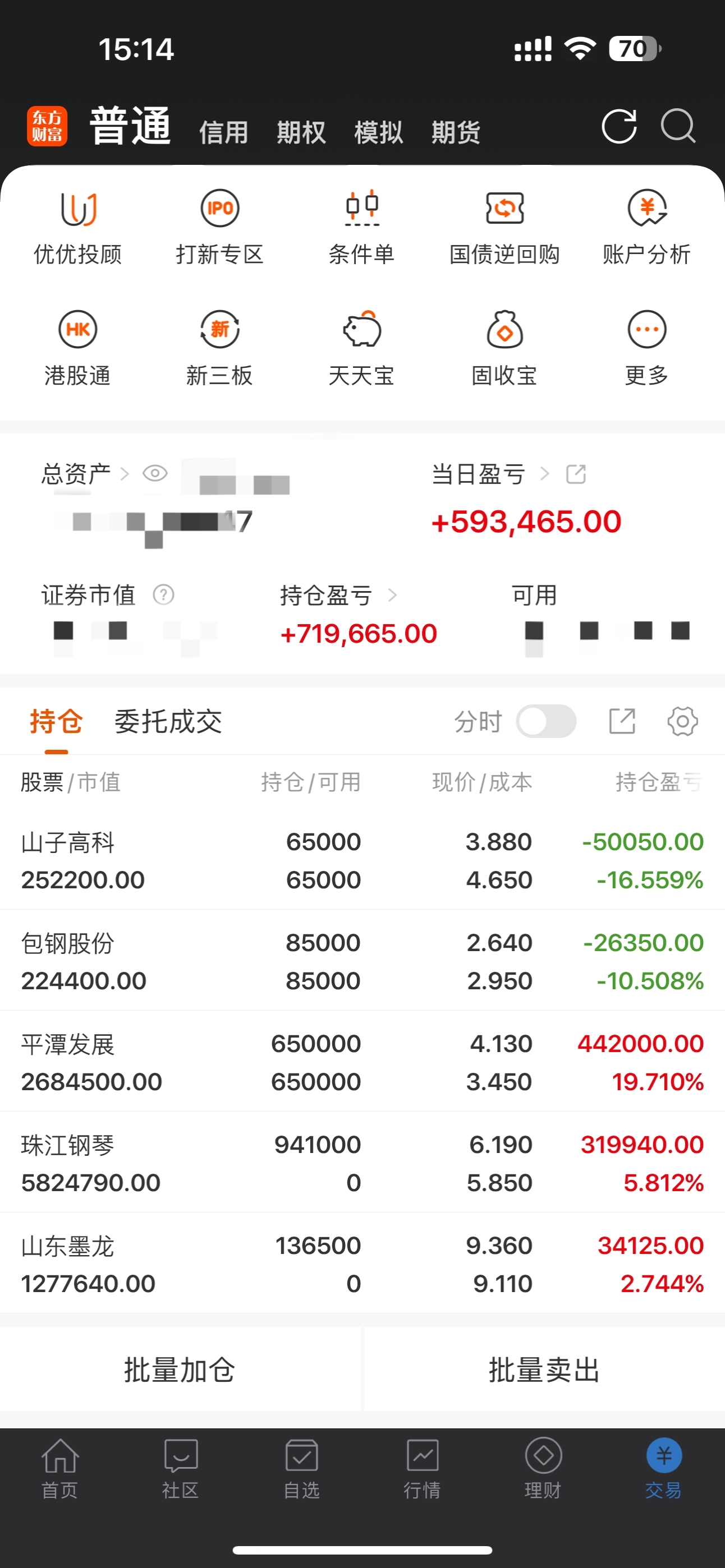 今日早盘进了珠江钢琴,山东墨龙两个都涨停。昨天已出七匹狼,市北高新,大众公用,大众今天卖飞了可惜。平潭发展因前两天也没什么起伏龙哥也觉得还有后手就稳健持有今天尾盘直接反包继续涨停板。山子高科,包钢股份耐心持有,不想跟我一起格局的可以割肉了。