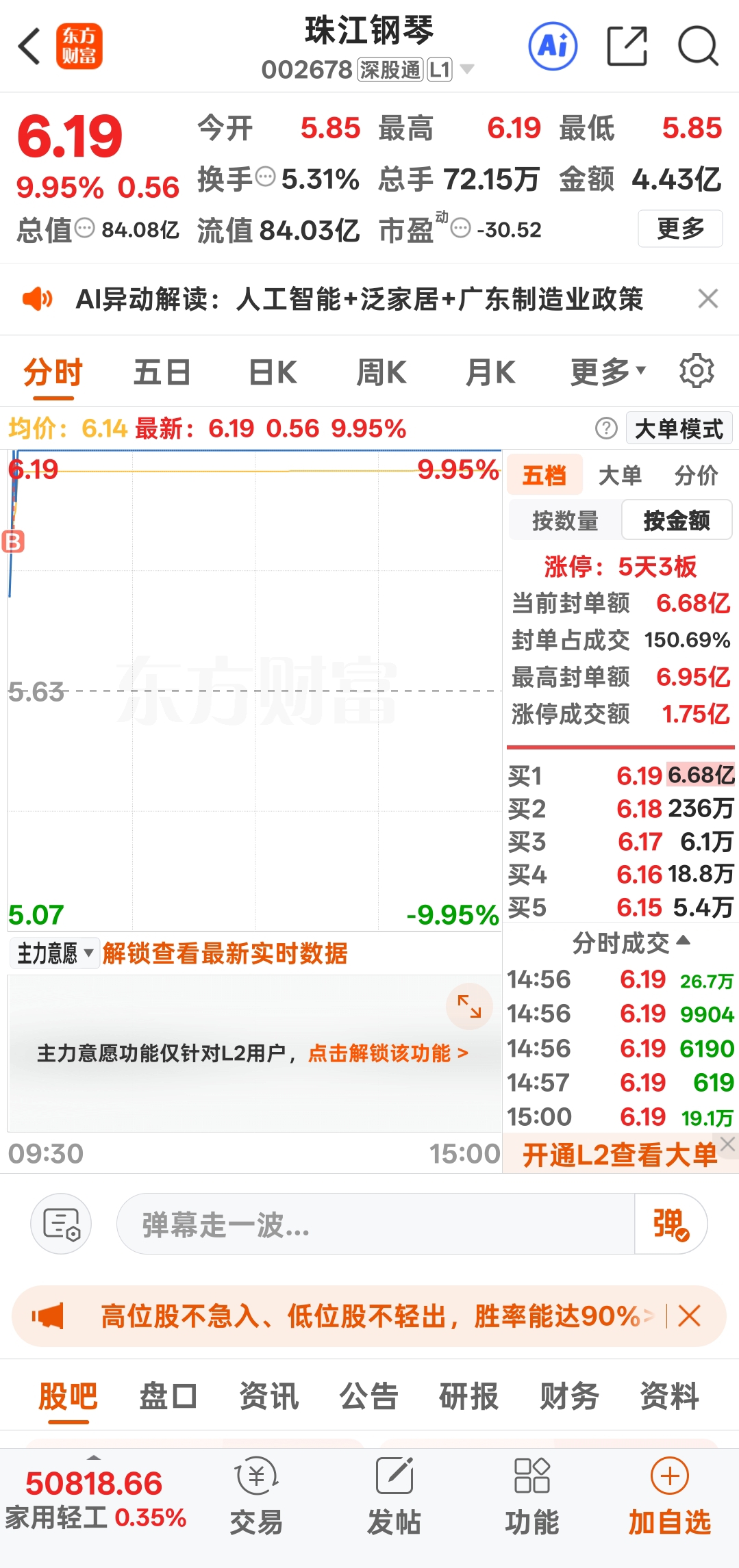 本级别拉升最少应该到6.43,强势到6.66但看这封单应该有机会跨级别拉升,若跨
