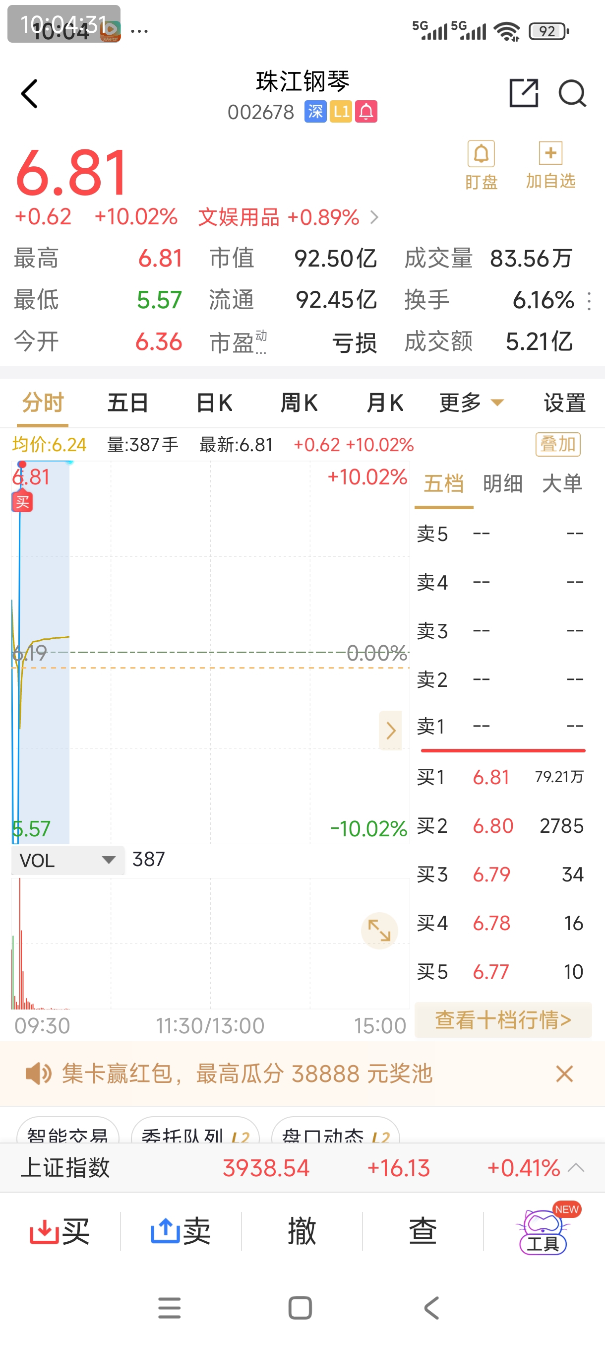 $珠江钢琴(SZ002678)$ 明天不要核我