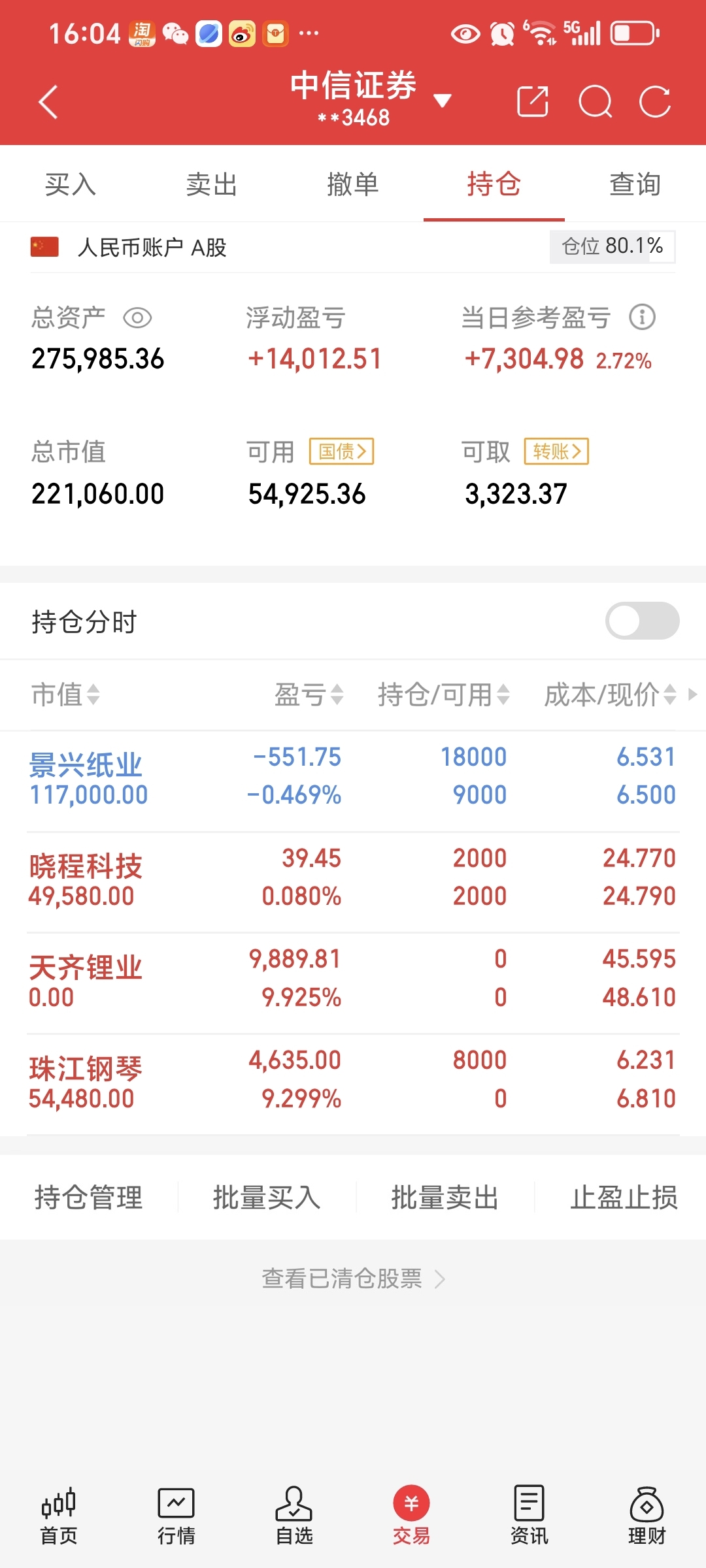 今日动向:出天齐,加景兴,上珠江(心脏都快蹦出来了)