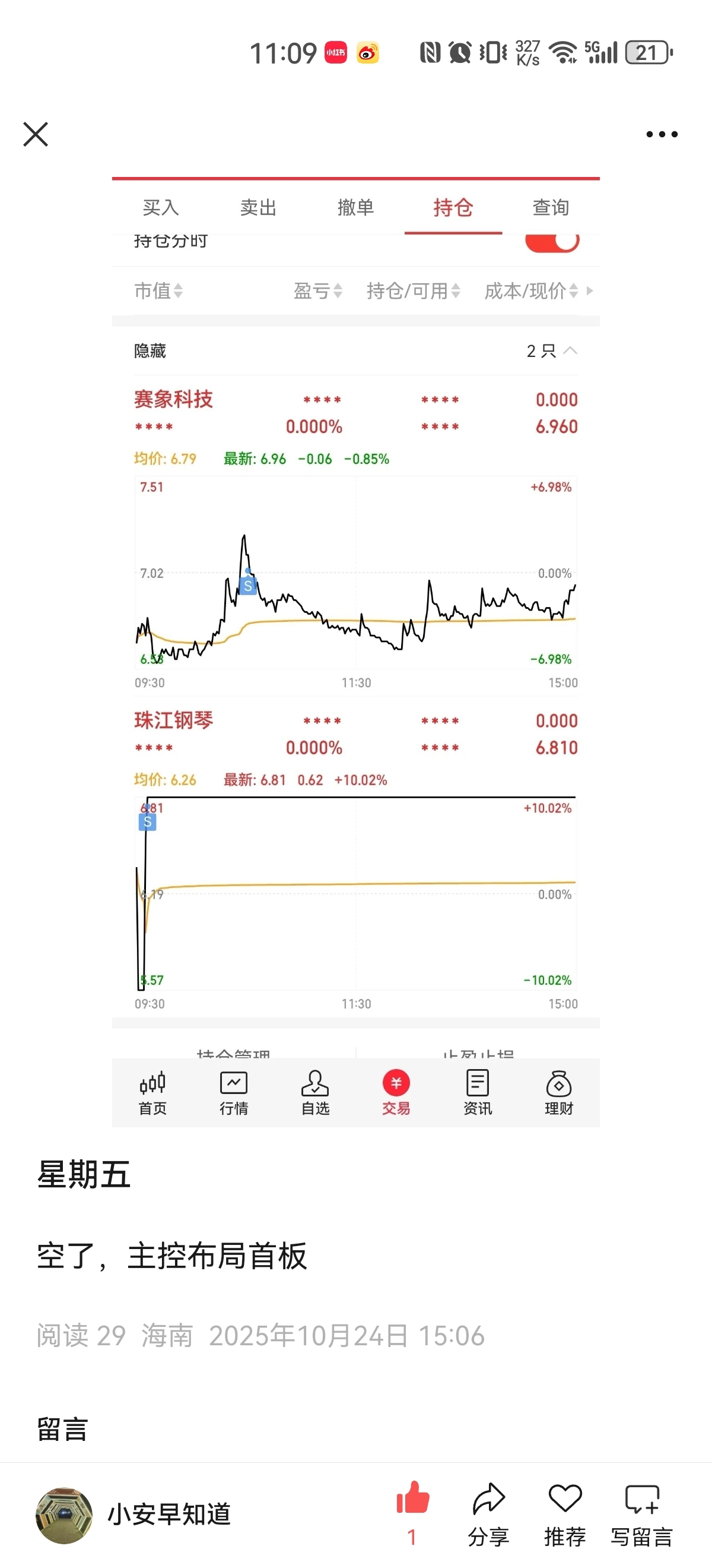 $珠江钢琴(SZ002678)$ 糟糕,好像卖飞