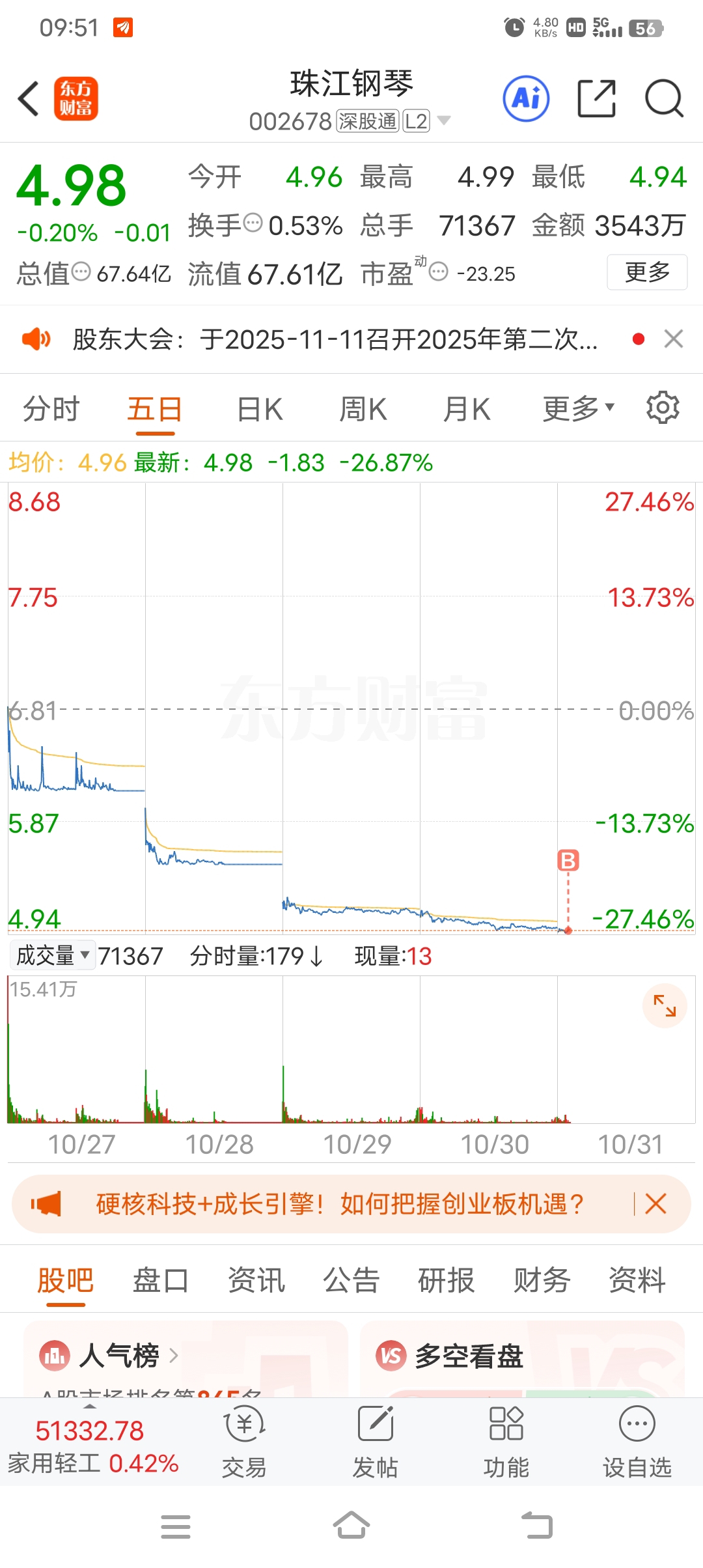 $珠江钢琴(SZ002678)$ 底仓建好博反弹
