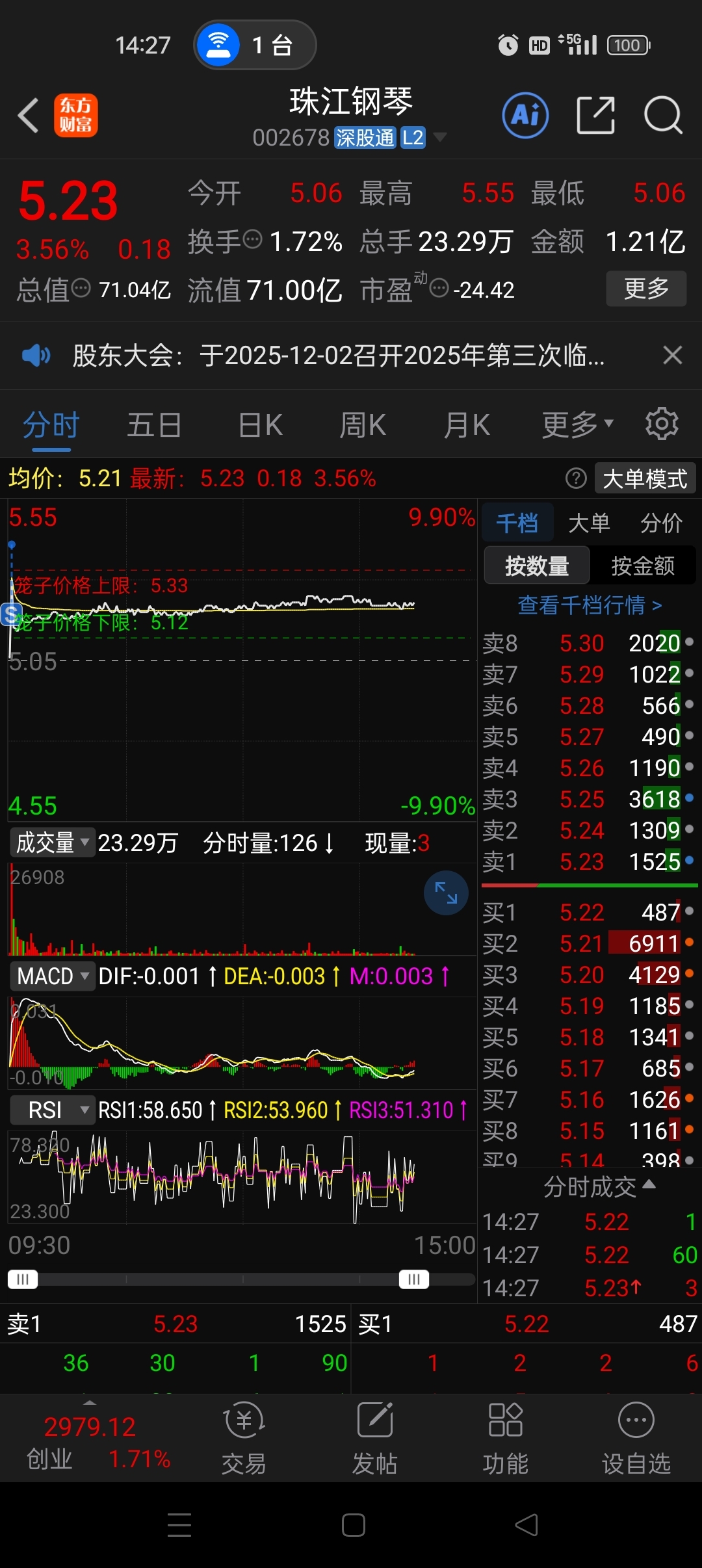 $珠江钢琴(SZ002678)$ 早上冲高跑了,明天低开接回