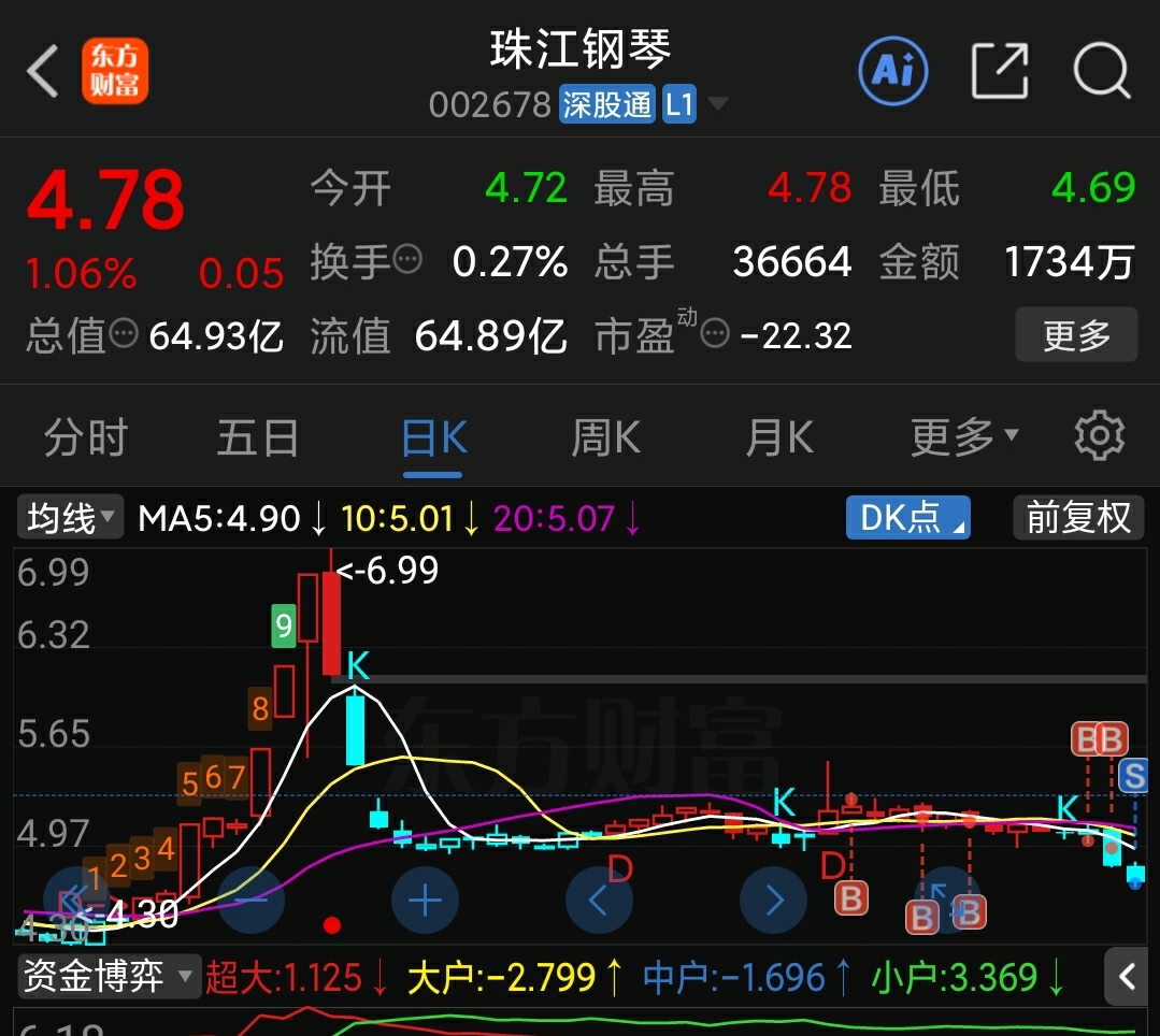 $珠江钢琴(SZ002678)$ 上周割了就拉