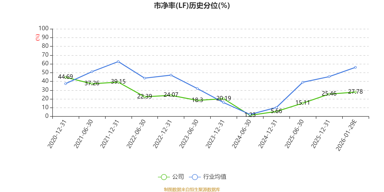 市盈率、市净率为负时,不显示当期分位数,会导致折线图中断。