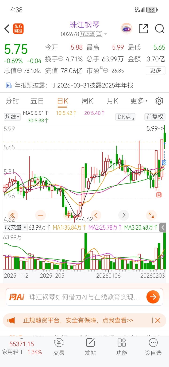 $珠江钢琴(SZ002678)$ 知足了