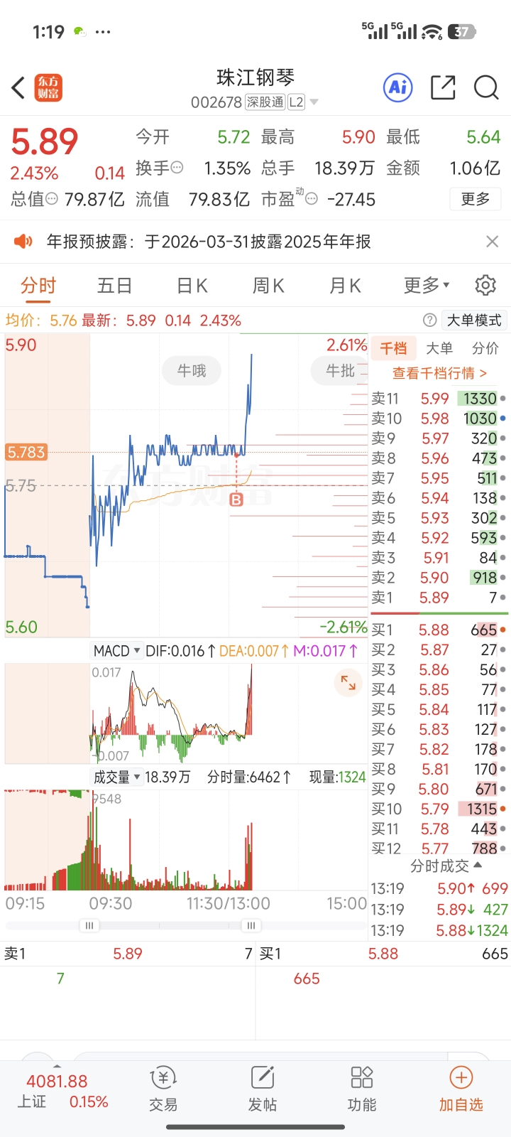 $珠江钢琴(SZ002678)$ 还有一半没买。不给机会吗