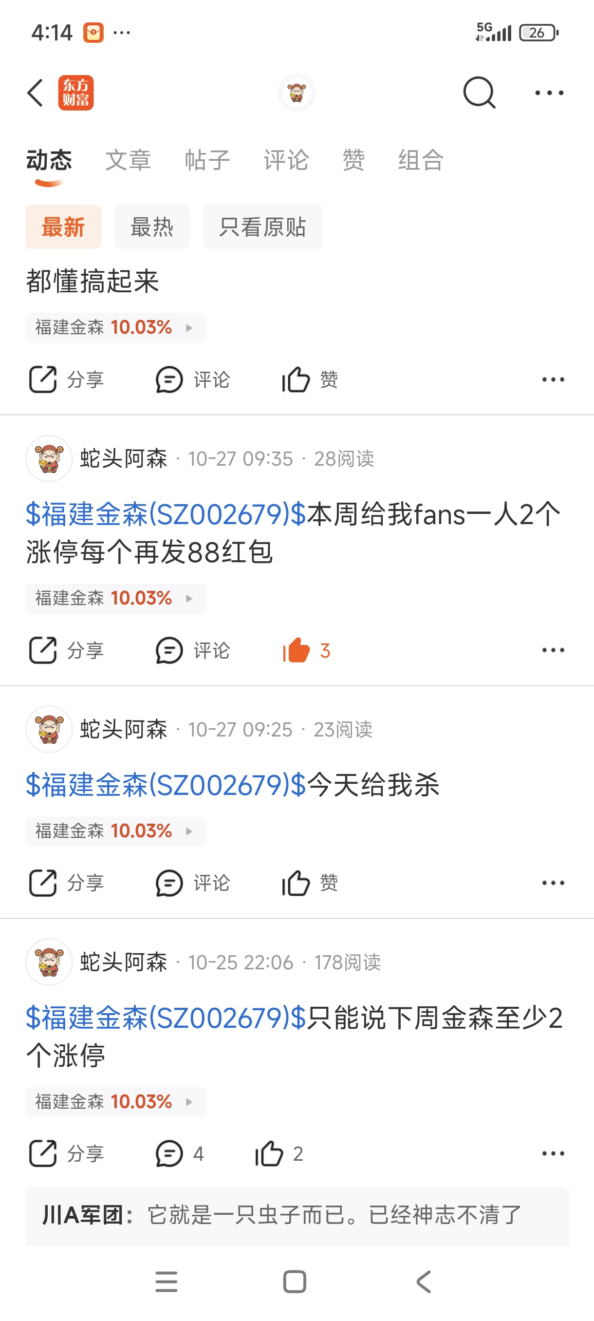 温馨提示: 1.根据《证券法》规定,禁止编造、传播虚假信息或者误导性信息,扰乱证券市场;2.用户在本社区发表的所有资料、言论等仅代表个人观点,与本网站立场无关,不对您构成任何投资建议。用户应基于自己的独立判断,自行决定证券投资并承担相应风险。《东方财富社区管理规定》