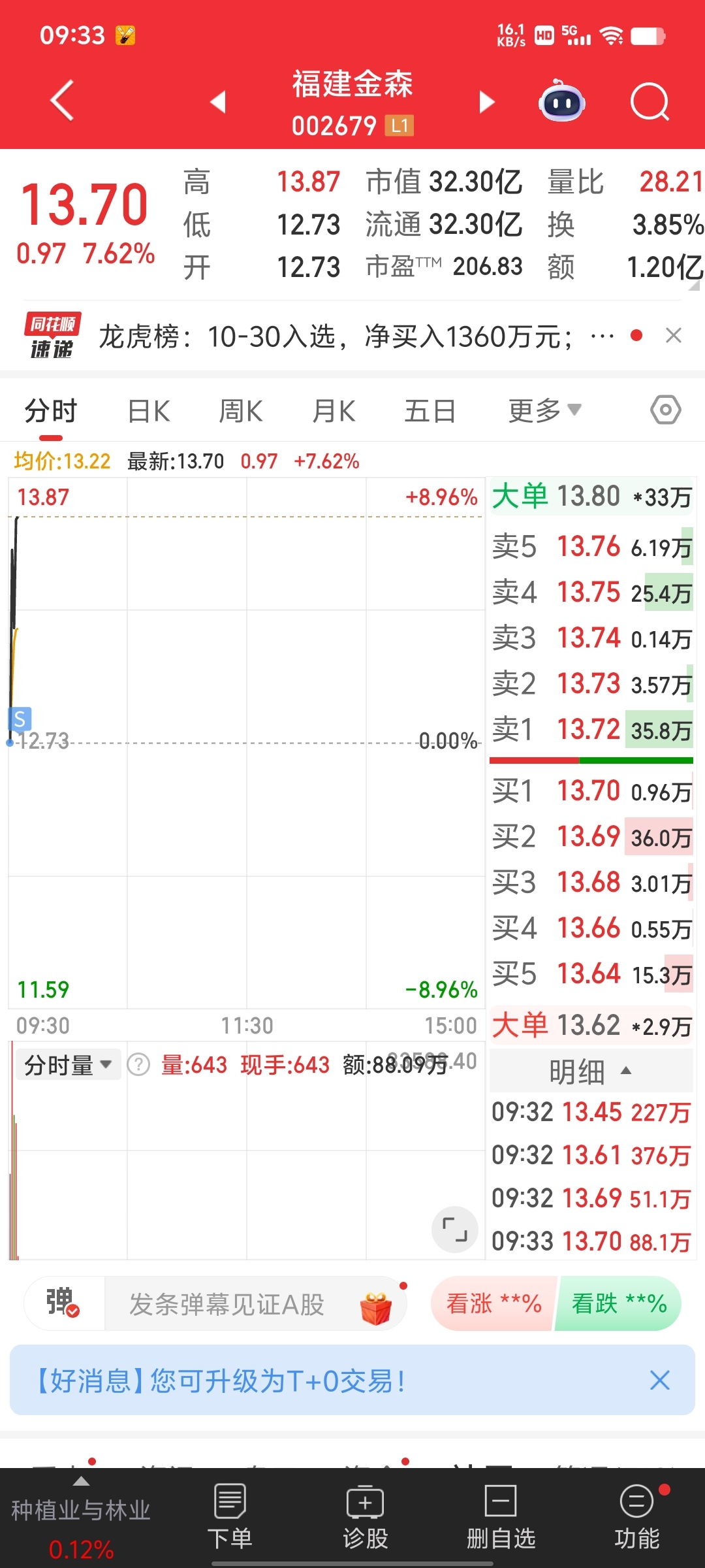 $福建金森(SZ002679)$ 开盘竞价吓跑了给我。。。。。。。