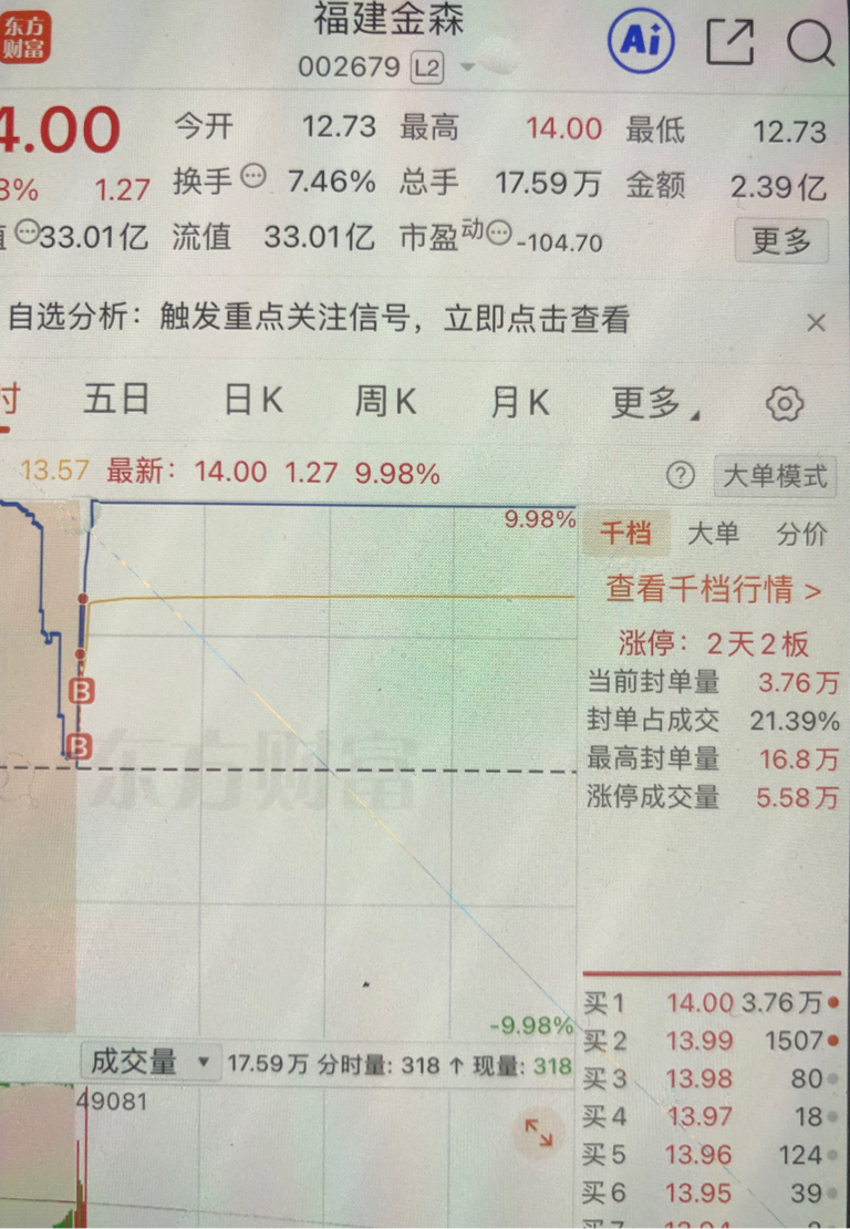 $福建金森(SZ002679)$ 盈亏自负,每日记录(原则:看准了再出手)