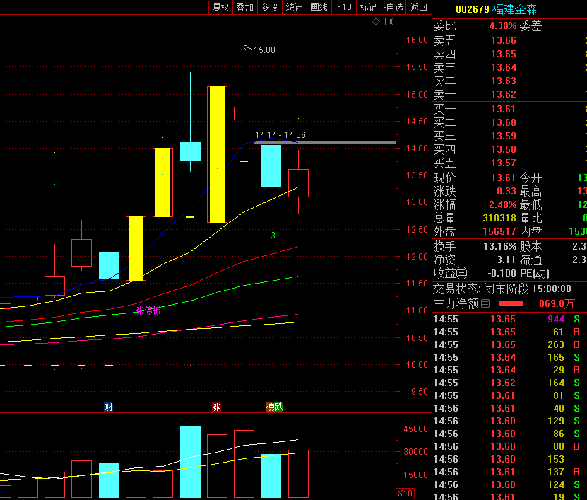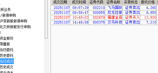 今天出了飞马国际和汉马科技;欣龙控股出了一半;买了福建金森‘