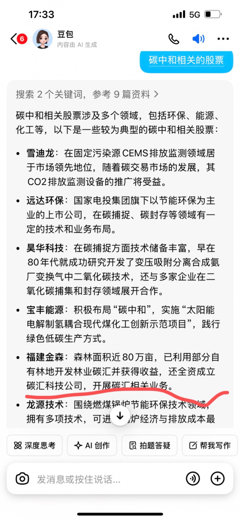 $福建金森(SZ002679)$ 豆包说有关联,碳中和,不知道资金会不会进来,不好说!市场,变化太快,不好判断!