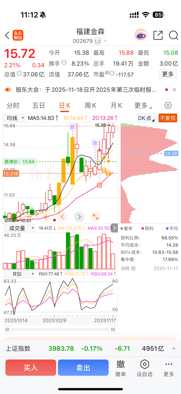 $福建金森(SZ002679)$ 相信你15.88突破只是时间问题,你已经够强啦3天20个点利润还想什么