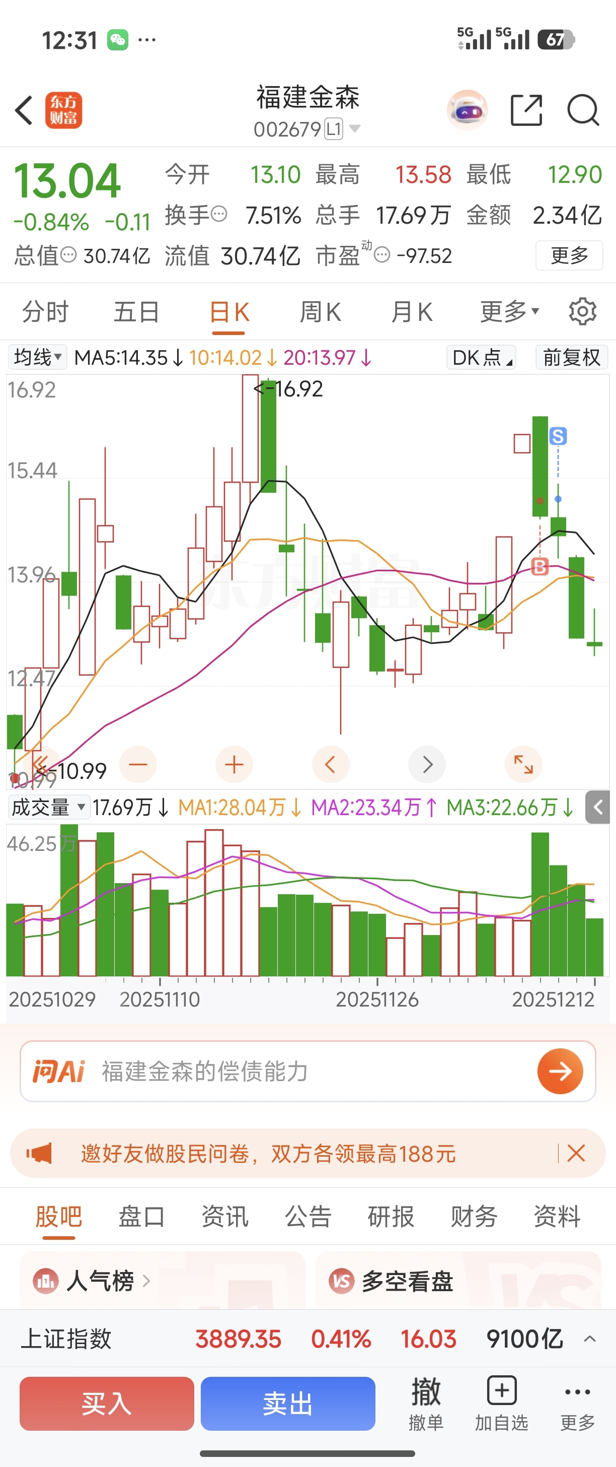 $福建金森(SZ002679)$ 说了错了就是错了,不及预期前面不要抱有幻想,亏3个点跑了,总比多亏10几个点好,一定要学会纪律