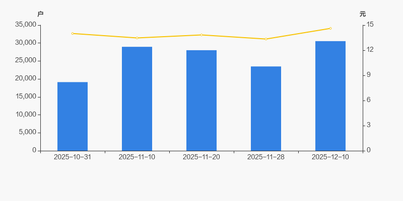 2025年10月31日至今,公司股东户数显著大幅增长,区间涨幅达59.71%。2025年10月31日至2025年12月10日区间股价上涨4.36%。