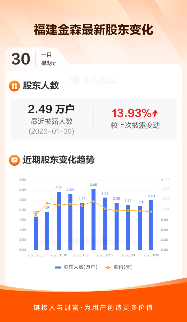 福建金森:截至1月30日最新股东户数2.49万户,较上期增加13.93%