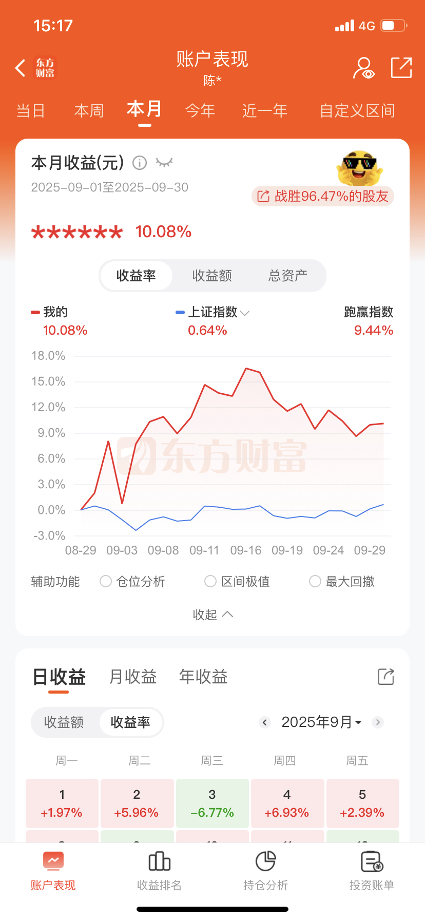 9月收官,大奋和煤炭分别占我3成仓位,仓位并列第一,期待10月,发涂墙