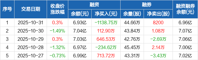 奋达科技:融资净偿还1138.75万元,融资余额6.93亿元(10-31)