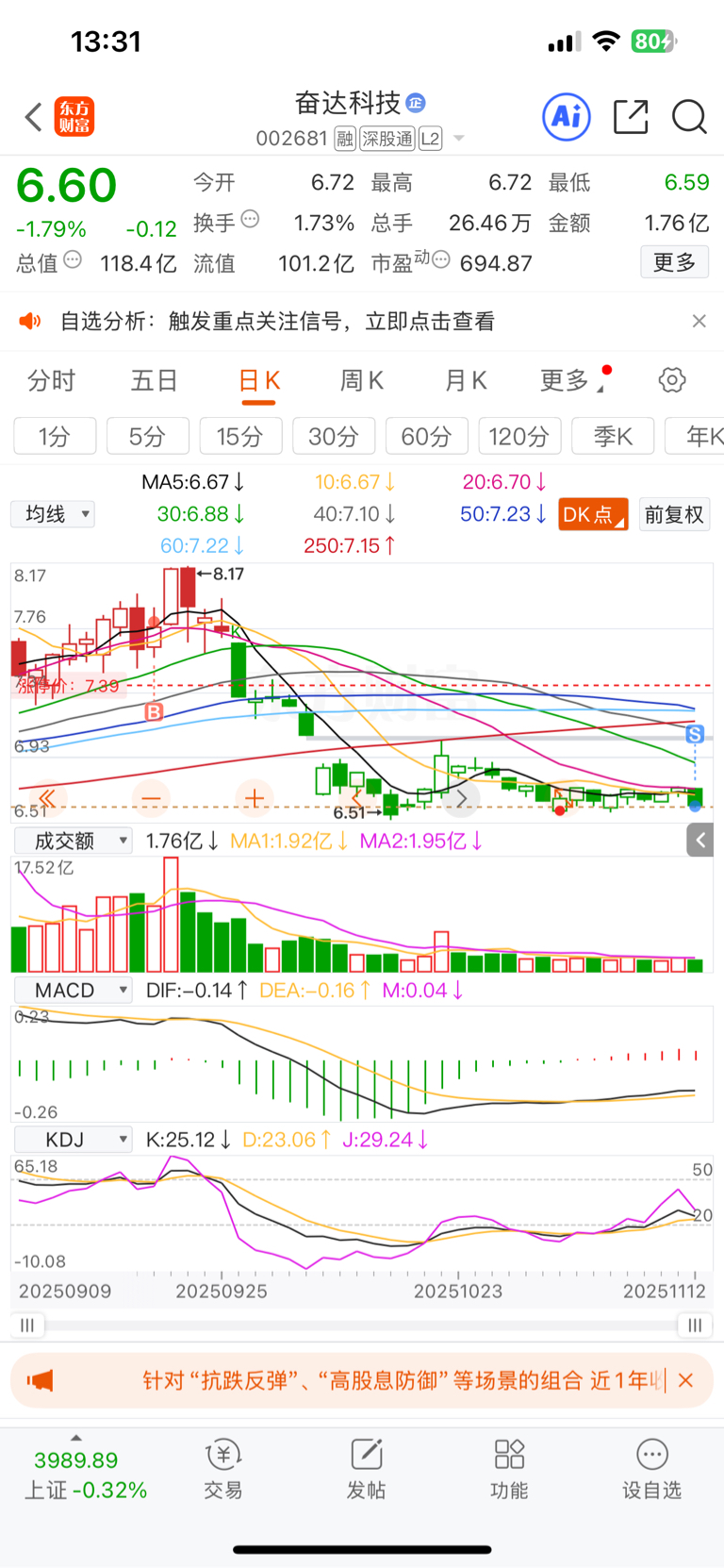 $奋达科技(SZ002681)$ 没预期了,亏了快20个点割肉,没见过这么拉垮的大