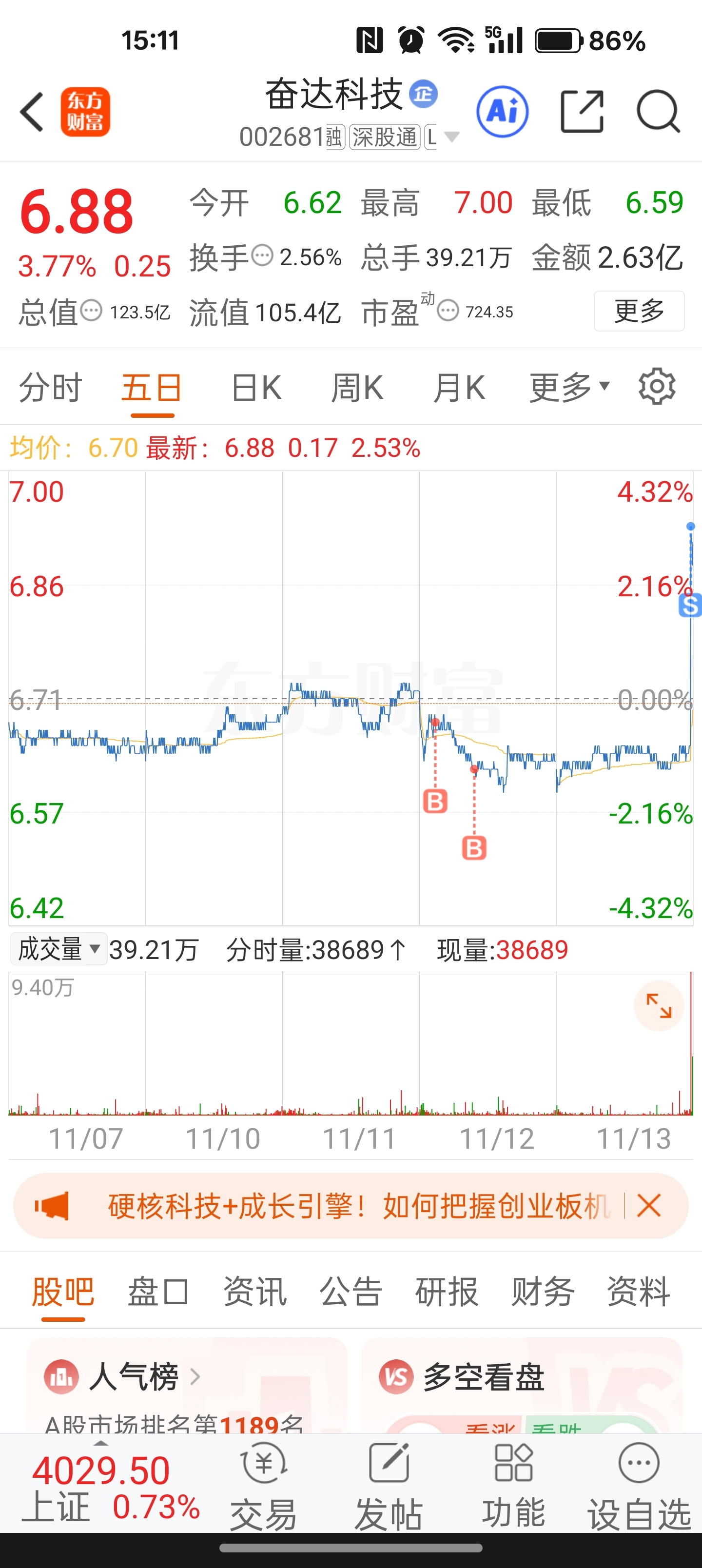 $奋达科技(SZ002681)$ 把昨天加的几十手t出去。