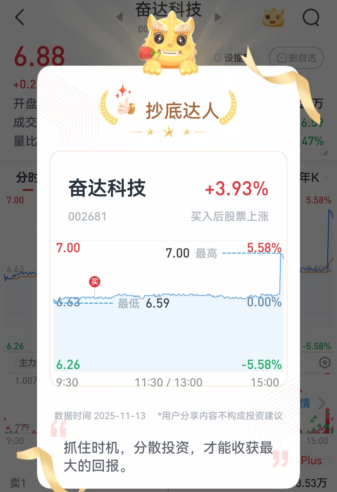 $奋达科技(SZ002681)$ 来报个到