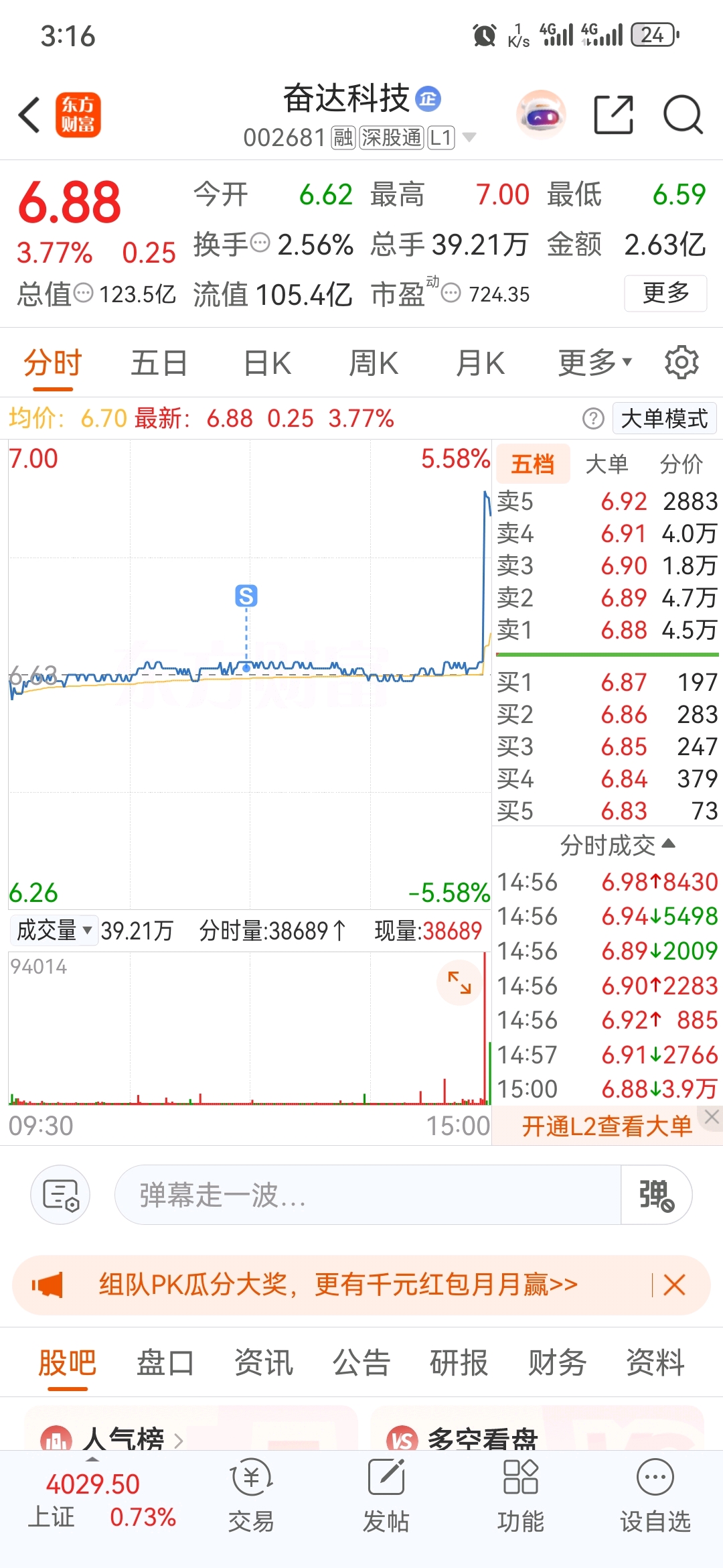 $奋达科技(SZ002681)$ 亏十五个点,一割就涨