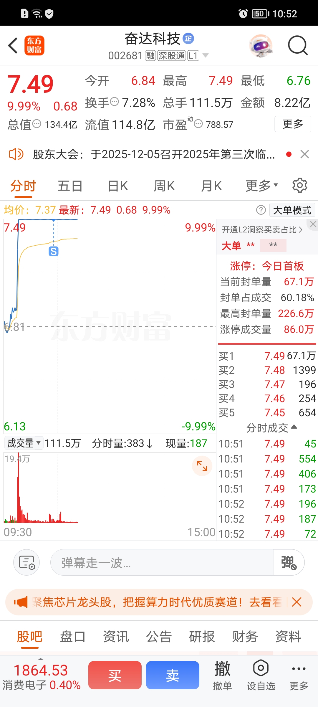 $奋达科技(SZ002681)$ 先走,留下的发财