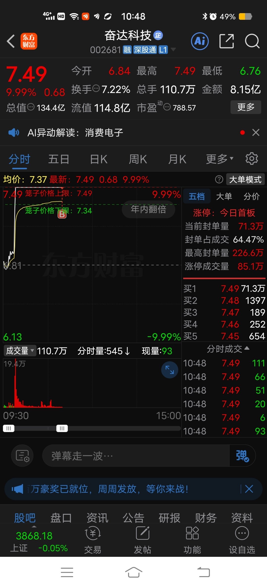$奋达科技(SZ002681)$ 一个散户都能排进来买到意味着什么?意味着主力早就把封单撤了,人家在板上在出货呢,劝你们赚钱的赶紧走,好良言难劝该死的鬼。。。(个人意见,听不听你们随意,都是成年人,一切后果自负)